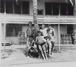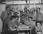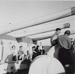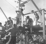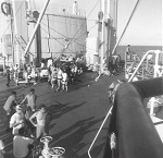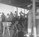 (SH385) BBQ on HMCS MACKENZIE at sea - Richardson, Howie Kolson (SH386) BBQ on HMCS MACKENZIE at sea - Freeman Abbott, Marsh, Bert Batcheleor (SH387) Dave Windle on HMCS MACKENZIE (foreground, centre) (SH388) "Beauty Contest" during a Banyan on HMCS MACKENZIE - The contestant all in white with the black hat is Donald Smeeth
