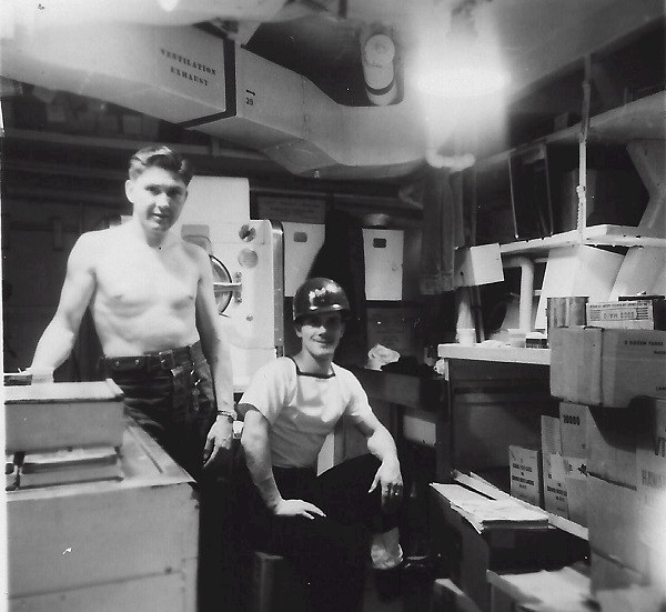 (SH25) Cliff Bulme (left) and Steve Hlasny, Yokosuka drydock, 1952 (SH26) Cliff Bulme, Yokosuka dry dock, 1952 (SH27) Unknown crew member, 8 mess, HMCS CRUSADER, 1952 (SH28) Steve Hlasny holding a 4.5" casing (SH29) Dan McIsaac at AA gun mount, HMCS CRUSADER