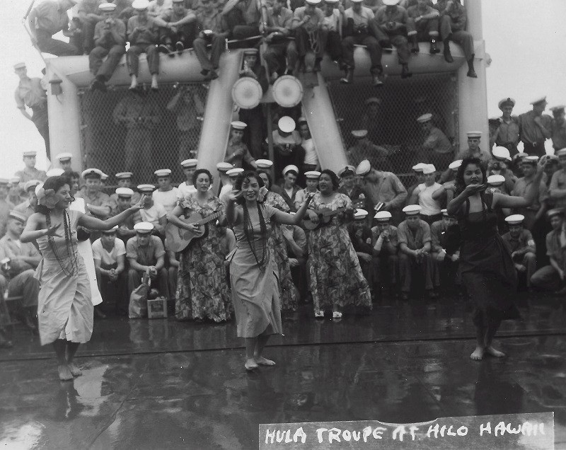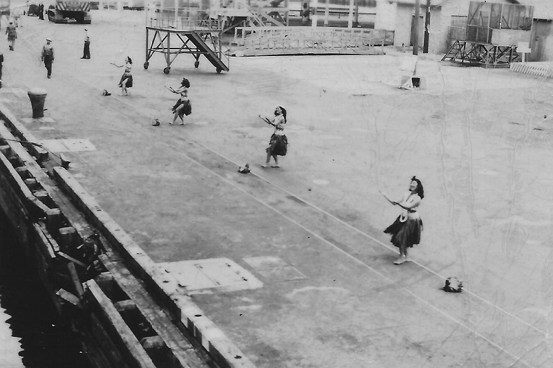 (SH137) Jim Lyttle and Steve Hlasny (right), Acapulco - Feb 1958 (SH138) Relaxing at sea, B Gun Deck - Feb 1958 (SH139) Relaxing at sea, Saluting Gun Deck - Feb 1958 (SH140) Hula welcome for HMCS ONTARIO. Her last visit to Pearl Harbour, Mar 1958 (SH141) Hula welcome for HMCS ONTARIO. Her last visit to Pearl Harbour, Mar 1958
