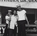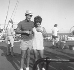 (SH394-395) Steve Hlasny para-sailing in Puerto Vallarta ... and coming in for a landing on the beach (SH396) Freeman Abbott having a swinging time ashore (SH397) RPs bash ashore at Long Beach, Calif. Lesperance (centre) (SH398) Max Brand cooking our steaks onboard ship
