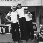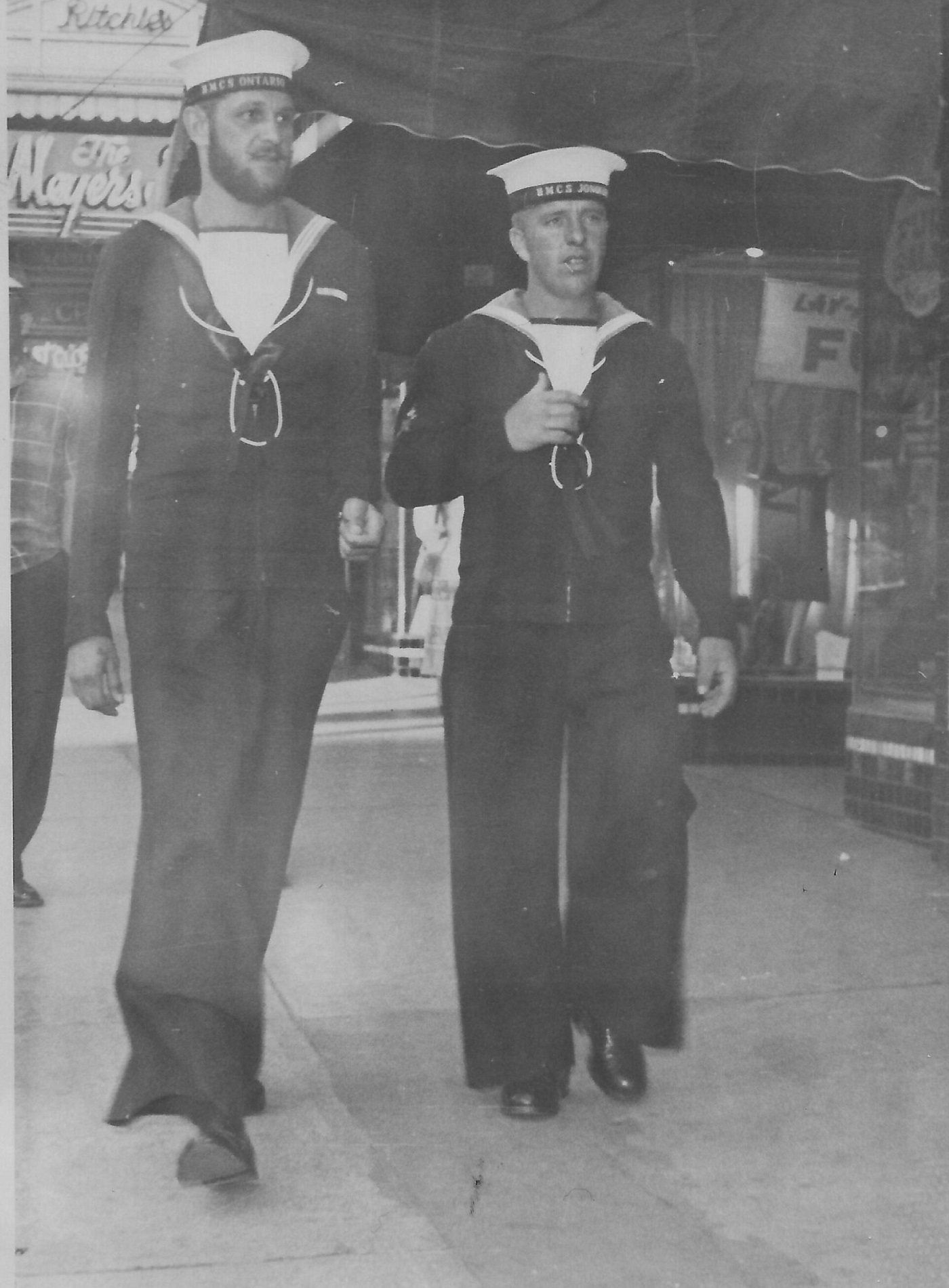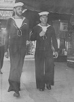 (SH70) JONQUIERE sailors Charlie Watkins & Jerry Wilkins ashore (SH71) Charlie Watkins & Jim Lyttle on HMCS JONQUIERE (SH72) Harry Reynolds on HMCS JONQUIERE (SH73) JONQUIERE sailor Jim Fedema ashore (SH74) Crews from RCN ships participating in parade (nearing the intersection of Hasting and Granville) in Vancouver, BC