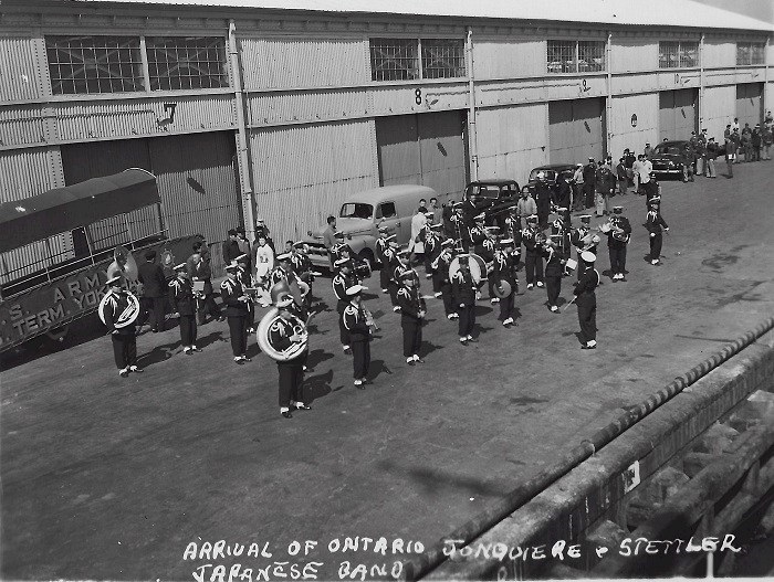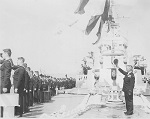 (SH117) Crew members from HMCS ONTARIO taking part in a ceremony at Canadian cemetery in Hong Kong (SH118) Steve Hlasny, HMCS ONTARIO, takes one last rickshaw ride while at Hong Kong (SH119) Jackstay transfer between HMCS ONTARIO and HMCS JONQUIERE (SH120) Band greets HMCS ONTARIO, HMCS JONQUIERE and HMCS STETTLER on their arrival at Yokohama, Japan (SH121) Capt. Welland greets dignitaries at Yokohama, Japan