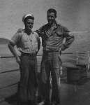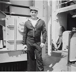 (SH20) L-R: Pinkus, McIsaac and Hlasny, on HMCS CRUSADER, Jul 1952 (SH21) Steve Hlasny (L) and John Parent, on HMCS CRUSADER, Jul 1952 (SH22) ABNQ Bill Jesney on HMCS CRUSADER (SH23) AB Steve Hlasny by "X" gun, HMCS CRUSADER, 1952 (SH24) LS Lanky Inouye, HMCS CRUSADER, 1952