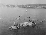 (SH127) Fleet Regatta, June 1957 - HMCS ATHABASKAN entry. Photo taken from HMCS ONTARIO (SH128) Fleet Regatta, June 1957. "Minesweeping Northern Ops". Minesweeping Squadron entry. Photo taken from HMCS ONTARIO (SH129) Steve Hlasny on HMCS ONTARIO - Jul 1957