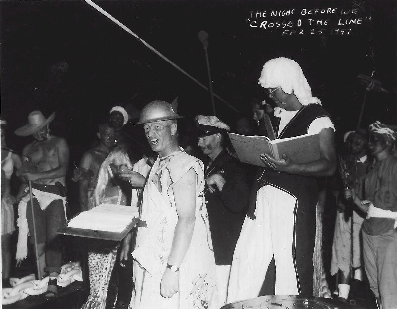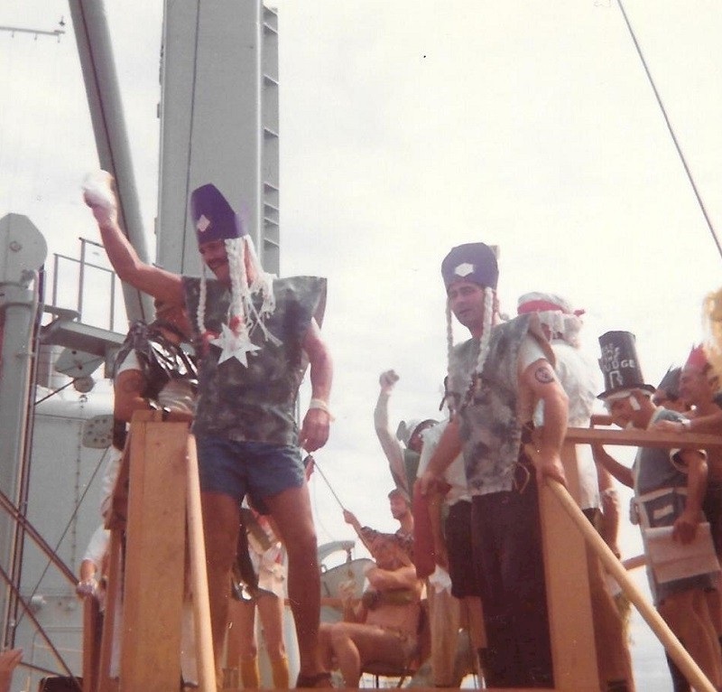 (SH11) Crossing the Line on HMCS QU'APPELLE, 14 May 1968. PO2 Steve Hlasny dressed as a Fijian (SH12) Crossing the Line on HMCS QU'APPELLE, 14 May 1968 - Neptune's Barbers (SH13) Crossing the Line on HMCS QU'APPELLE, 14 May 1968 - "Police Chief" George Sears and PO2 Steve Hlasny (SH14) Crossing the Line on HMCS QU'APPELLE, 14 May 1968 - Tadpole Selesky (foreground) (SH15) Crossing the Line on HMCS QU'APPELLE, 14 May 1968 - PO2 Steve Hlasny