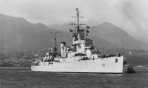 Ships served in: HMCS TECUMSEH - Enlisted May 1951 as an OS HMCS CORNWALLIS - Drafted to CORNWALLIS Jun 1951 for New Entry Training HMCS WALLACEBURG - Served in WALLACEBURG 1951-1952 as an OSTR, RCN HMCS ANTIGONISH - Served in ANTIGONISH in 1952 as an OSTR, RCN HMCS CRUSADER - Served in CRUSADER 1952-1953 as an AB.NQ, RCN for her Korean War tour HMCS ATHABASKAN - Served in ATHABASKAN 1953-1954 as an AB.NQ, RCN HMCS JONQUIERE - Served in JONQUIERE 1954 - 1956 as a LS.RP3, RCN HMCS ONTARIO - Served in ONTARIO 1956-1958 as an LS.RP3, RCN HMCS CRESCENT - Served in CRESCENT 1959-1960 as an LS.RP3, RCN HMCS ASSINIBOINE - Served in ASSINIBOINE 1960-1961 as an LS.RP3, RCN HMCS MARGAREE - Served in MARGAREE 1962-1964 as a P2LT HMCS NEW GLASGOW - Served in NEW GLASGOW in 1964 as a P2LT HMCS STE THERESE - Served in STE THERESE in 1964 as a P2LT HMCS QU'APPELLE - Served in QU'APPELLE 1966-1970 as a 2LT HMCS