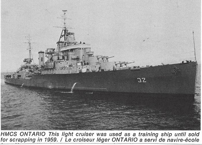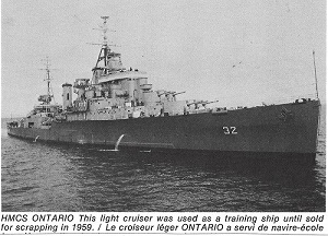 (SH172) "Big O's" last port visit, Vancouver, BC, Aug 1958 (SH173) HMCS ONTARIO, the "Big O", Vancouver, Aug 1958. "Sorry to see her go" (Webmaster's note: While the article is from Aug 1958, the photo appears to be a stock photo from the early 1950s.)