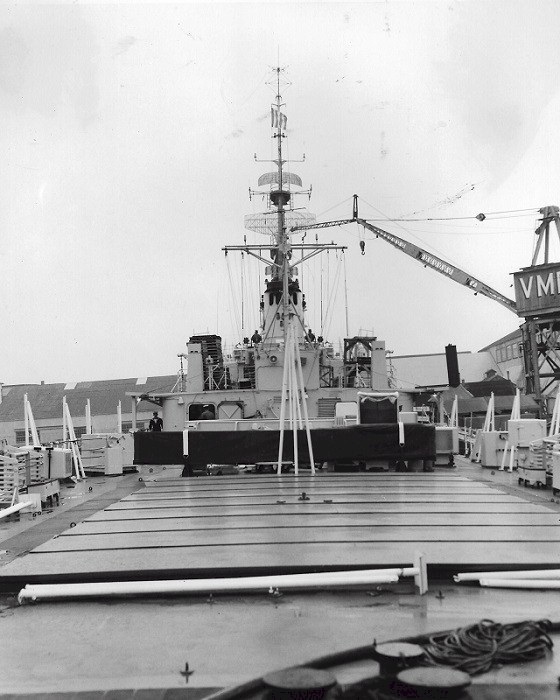 (SH177-SH178) HMCS MARGAREE at Vancouver Machinery Depot for her conversion to a DDH, Sep 1964