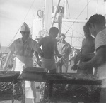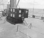 HMCS PROVIDER having a "No Day", crossing the International Date Line, EX RIMPAC 72 (SH247) Silcon and Dick Story, front left (SH248) Two storesmen, foreground