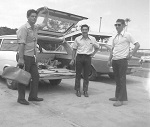(SH249) Bob Bader, Mel Gunther, Arny Yates, renting a car at Suva, Fiji and going on a tour (SH250) Mel Gunther, Steve Hlasny, Arny Yates and Bob Bader, Suva, Fiji, 28 Sep 1972 (SH251) Steve Hlasny and Mel Gunther, Suva, Fiji, 28 Sep 1972 (SH252) HMAS STUART conducting RAS with HMCS PROVIDER during LONGEX 72 (SH253) HMAS BRISBANE conducting RAS with HMCS PROVIDER during LONGEX 72