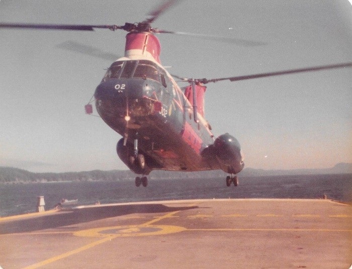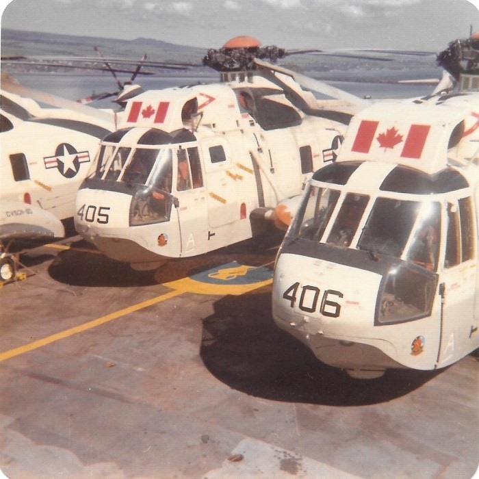 EX RIMPAC 73 (SH256) Ed Lascelle (no shirt), on HMCS PROVIDER, Sep 1973, USS Midway in the background (SH257) PROVIDER'S Helos, San Diego, Sep 1973 (SH258) HMCS PROVIDER (SH259) Ralph Torris, Mel Gunther, HMCS PROVIDER (SH260) PO2 Steve Hlasny receiving his first clasp to his CD at divisions on HMCS PROVIDER during EX RIMPAC 73