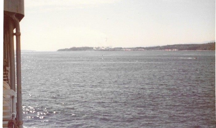 (SH399) Freeman, Moller, Dennet, Raymond and Irvine - fine dining at sea (SH400) HMCS MACKENZIE entering Esquimalt Harbour (SH401) Looking astern on HMCS MACKENZIE, one last look at the Strait of Juan de Fuca (SH402) HMCS MACKENZIE passing Duntz Head (SH403) Coming alongside C Jetty - was to be my last trip