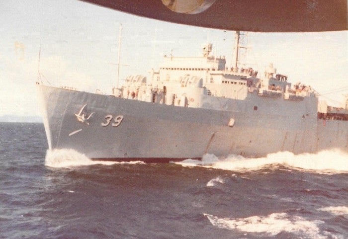 WESTPLOY 75 (SH323) 500 Won, Korean currency (SG324) Yokosuka, Japan, Apr 1975 - photo taken from PROVIDER as she enters port