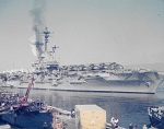 (SH264) USS Constellation with a flight deck area of 4 acres (SH265) HMCS PROVIDER'S boat crew bring over 2 injured crew from HMCS Rainbow, Mar 1974 (SH266) Helos joining HMCS PROVIDER from North Island, Mar 1974 (SH267) Turkish sailors on board HMCS PROVIDER for the day, Mar 1974 - Also in photo - Frank Sailor, Jim Parson, Larry Sawatsky, Glen Brydon (SH268) Bridge on HMCS PROVIDER
