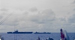 EX RIMPAC 75 - Sea phase (SH292) USS KITTY HAWK and USS PONCHUTLA (SH293) HMAS MELBOURNE (SH294) USS KIRK conducting RAS with HMCS PROVIDER (SH295) HMCS KOOTENAY (SH296) HMCS KOOTENAY personnel jackstay transfer - Tom Pleskivich