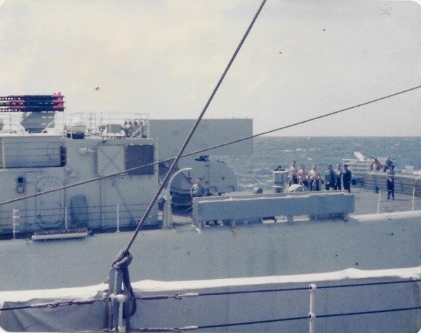 Crossing the Line on HMCS PROVIDER, 25 Sep 1972 - EX RIMPAC 72 (SH235) Akhurst, John Potter, Marsh (SH236) Akhurst, Dauoren, Brane (SH237) Johnston (SH238) Steve Hlasny, Dauoren (SH239) Birch-Jones (XO), Crickard (CO)