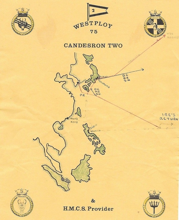 (SH180) The Legend of QU'APPELLE'S Name (SH181) Newspaper article on HMCS SASKATCHEWAN and HMCS QU'APPELLE departing for the Far East Cruise, Sep 1963 (SH182) Map of the 1963 Far East Cruise (SH183) HMCS QU'APPELLE 264 (SH184) HMCS QU'APPELLE 264 departing for the Far East, 1968