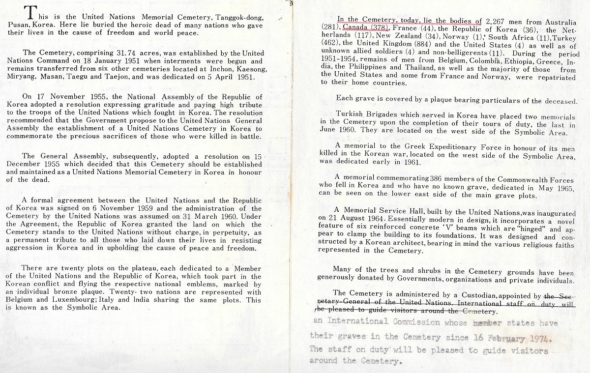 WESTPLOY 75 (SH311-SH314) Information booklet on the UN Memorial Cemetery in Korea