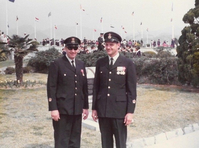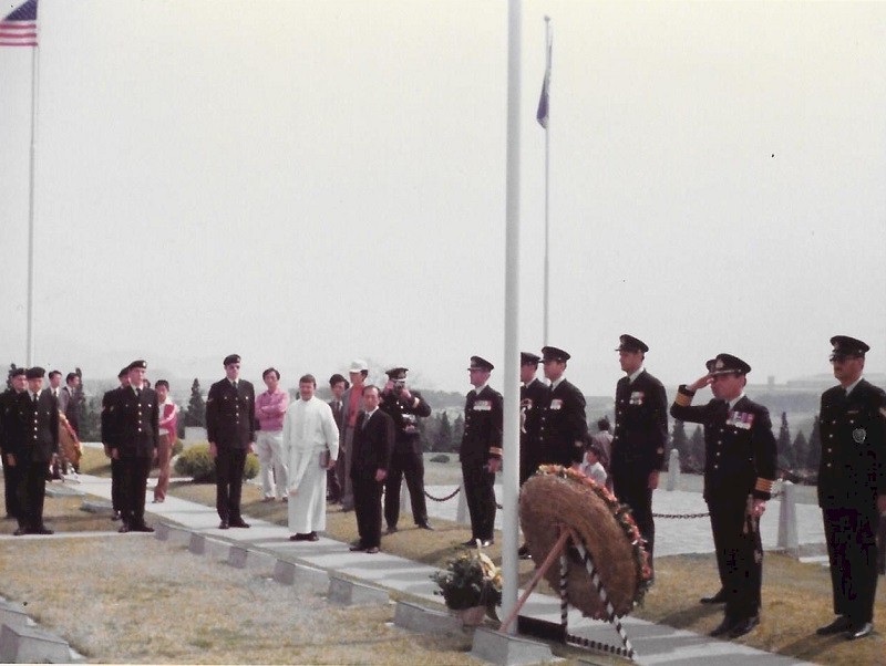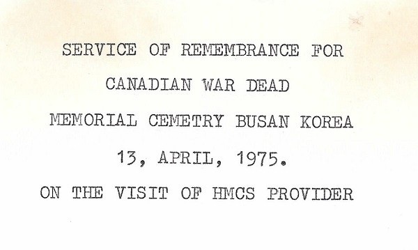 WESTPLOY 75 (SH320-SH322) HMCS PROVIDER conducts a Service of Remembrance for Canadian War Dead at the UN Cemetery, Pusan, Korea (SH320) Frank and Steve