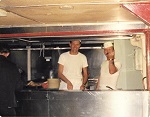 WESTPLOY 75 No-Day at sea (SH325) Frank (standing), Steve Hlasny to Frank's right (SH326) Steve, centre, moonlighting as a cook during the No-Day (SH327) CO Capt. Colin Shaw to the left of Miss PROVIDER and to the right is the XO Cdr Moore (SH328) Volleyball cheerleaders - Lou, Max, Lt(N) Mike Cooper, CPO2 Bash Callaghan, unk (SH329) A No-Day At the horse races