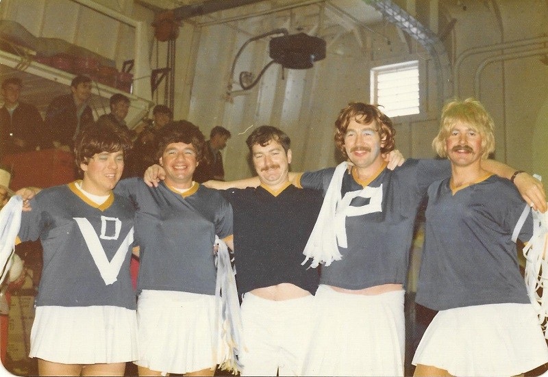 Old Sailors Night on HMCS MACKENZIE, 24 Jan 1979 (374) Running mates - Steve Hlasny, Ken Irvine, Freeman Abbott