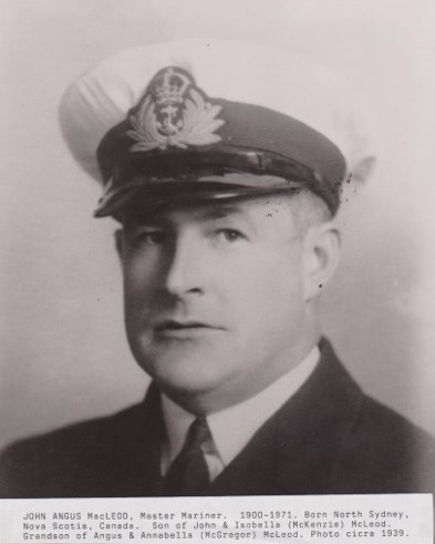 A native of North Sydney, Captain MacLeod began is sea-going career out of Nova Scotia porets as a younger man. He sailed aboard sailing vessels including the famous "Constellation", a U.S. built schooner-type yacht designed to participate in international sailing races.