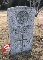 (EW01-EW02) Certificate of Service - pages 1 and 2 (EW03) Report of Death (EW04) Headstone for Stoker Edward Wall at the Bleumortier Cemetery, Castalia, NB