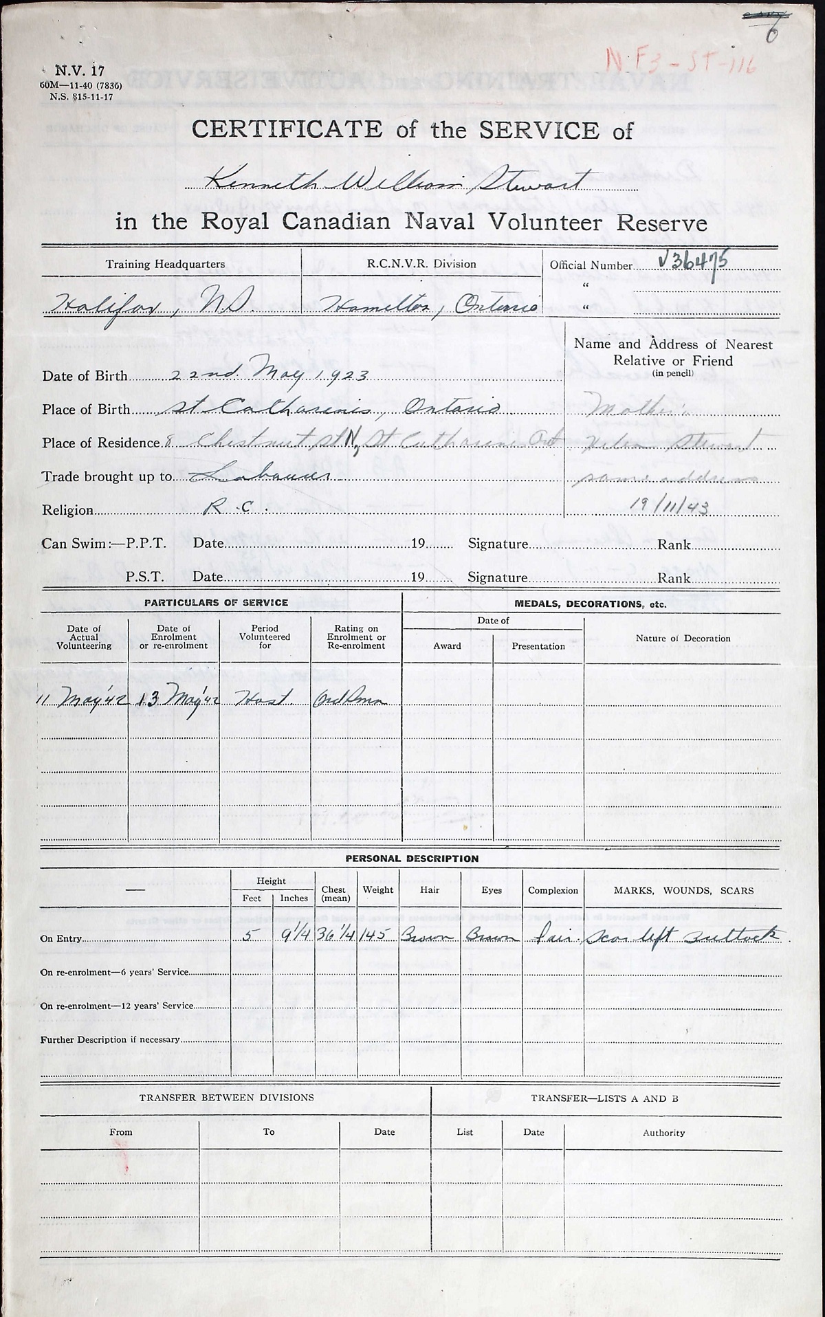 Kenneth's brother Earl Robert Stewart also served in the RCNVR during the Second World War.