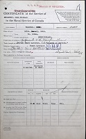 Ships served in: HMCS STADACONA - Enlisted 09 Oct 1940 as a Prob. Steward, RCNR HMCS VENTURE - Drafted to VENTURE 26 Nov 1940 as a Prob. Stwd, RCNR HMCS STADACONA - Drafted to STADACONA 06 Dec 1940 as a Prob. Stwd, RCNR *Transferred to Seaman Branch 25 Feb 1941 * Rated AB 25 Feb 1941 HMCS HOCHELAGA - Drafted to HOCHELAGA (Manning Pool) 06 May 1941 as an AB, RCNR HMCS LEVIS - Drafted to LEVIS 16 May 1941 as an AB, RCNR