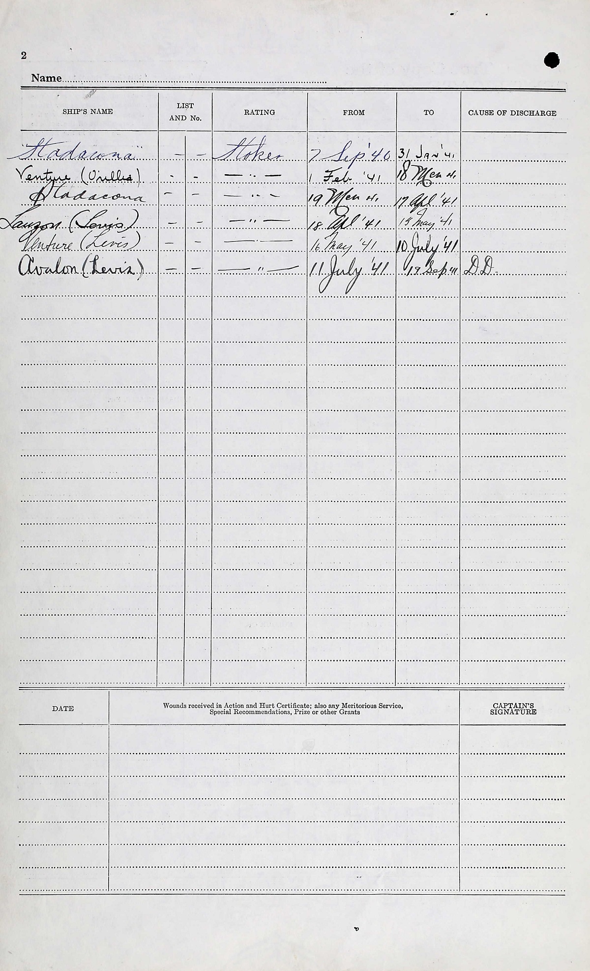 HMCS LEVIS - Drafted to LEVIS 18 Apr 1941 as a Sto 1c, RCNR