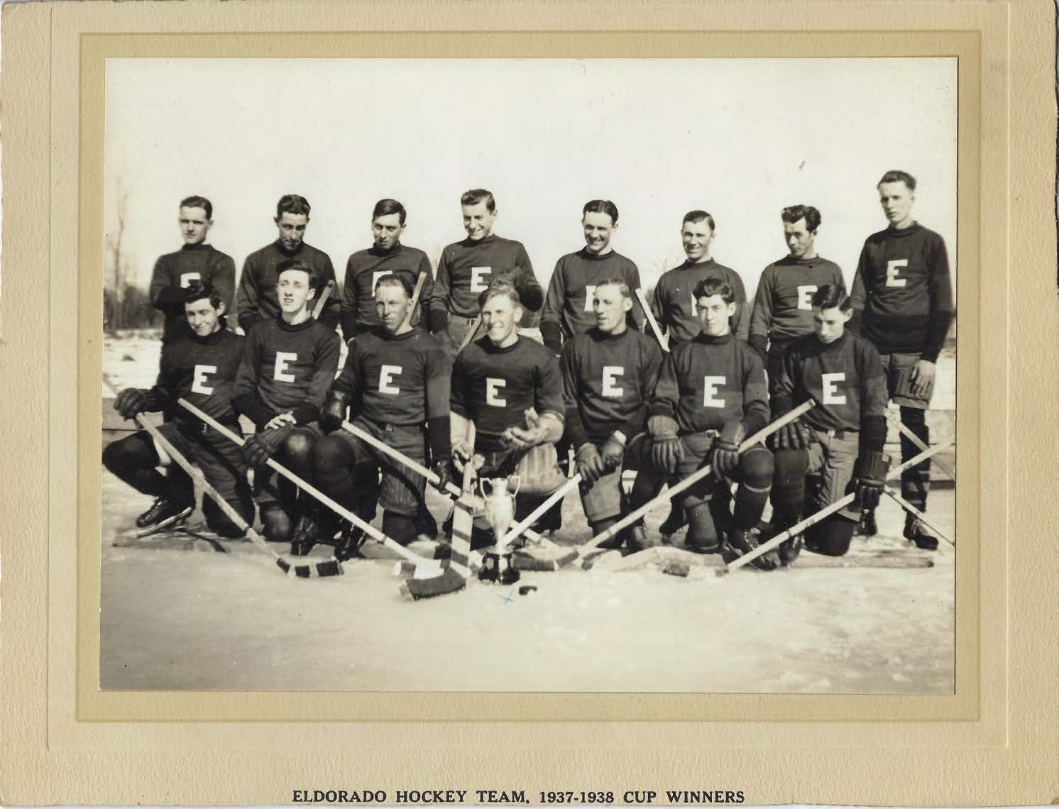 (KM08) Eldorado Hockey team 1937-1938 Cup Winners Ken Martin front row, centre Click on the above photo to view a larger image