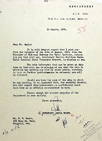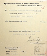Ships served in: KINGSTON DIVISION RCNVR - Enlisted 28 Oct 1941. Commenced Active Service 16 Mar 1942 HMCS CATARAQUI - Appointed to CATARAQUI 16 Mar 1942 as a Prob. SLt, RCNVR HMCS KINGS - Appointed to KINGS 26 Mar 1942 for training and disposal as a Prob. SLt, RCNVR HMCS STADACONA - 19 Jul 1942 for leave and disposal as a SLt, RCNVR HMCS PRESCOTT - Appointed to PRESCOTT 27 Jul 1942 as a SLt, RCNVR HMCS CORNWALLIS - Appointed to CORNWALLIS 31 May 1943 for training - Short A/S Course as a SLt, RCNVR HMCS FENNEL - Appointed to FENNEL 09 Jun 1943 as a SLt, RCNVR HMCS KINGS - Appointed to KINGS 13 Aug 1943 for Long (n) Course as a SLt, RCNVR HMCS REGINA - Appointed to REGINA 15 Nov 1943 as a SLt, RCNVR * Appointed A/Lt 15 Jan 1944 * Appointed Lt 27 Jul 1944 (seniority 16 Mar 1943)
