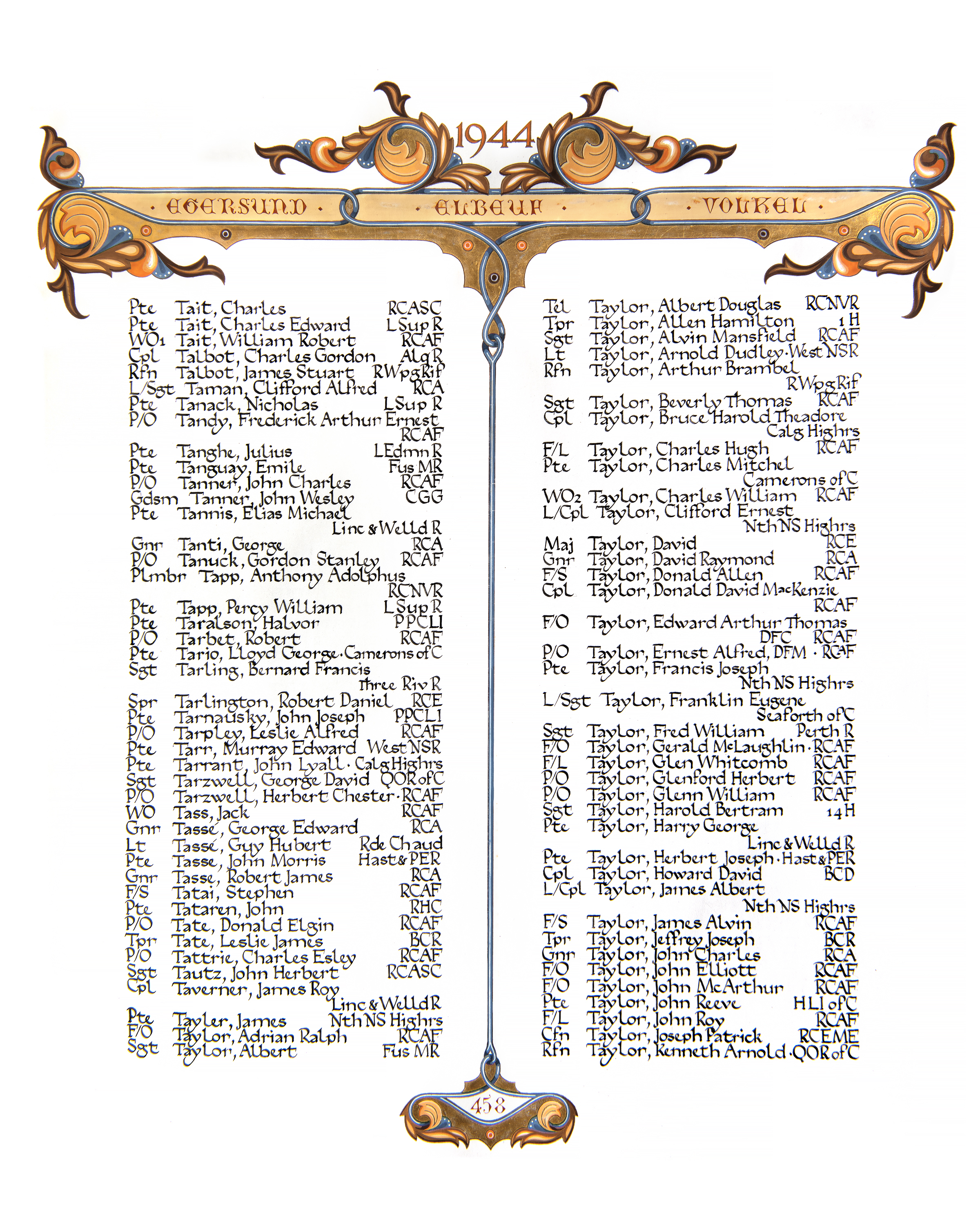 TAYLOR, Albert Douglas, Tel, V45851, RCNVR, MPK - 08 Aug 1944, HMCS REGINA - Son of Albert and Gladys Taylor, of Toronto, Ontario.
