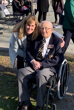 Left: CPO Bill Cox during the Second World War Right: Bill Cox with his granddaughter at the Camp Hill Veterans' Remembrance Day Service 11 Nov 2022 where he read "In Flanders Field" click on the above photos to view larger images