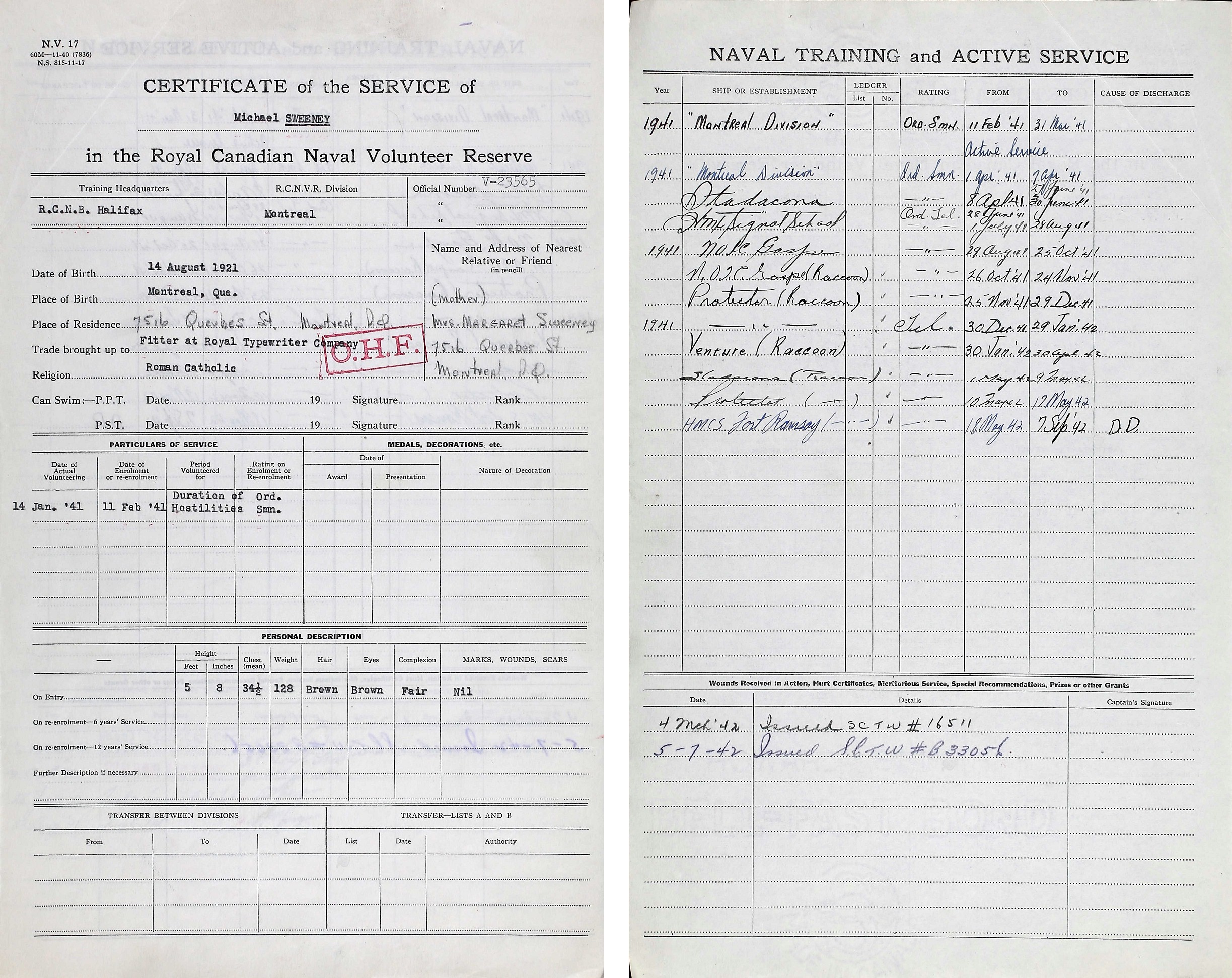 MONTREAL DIVISION RCNVR - Enlisted 11 Feb 1941. Commenced Active Service 01 Apr 1941