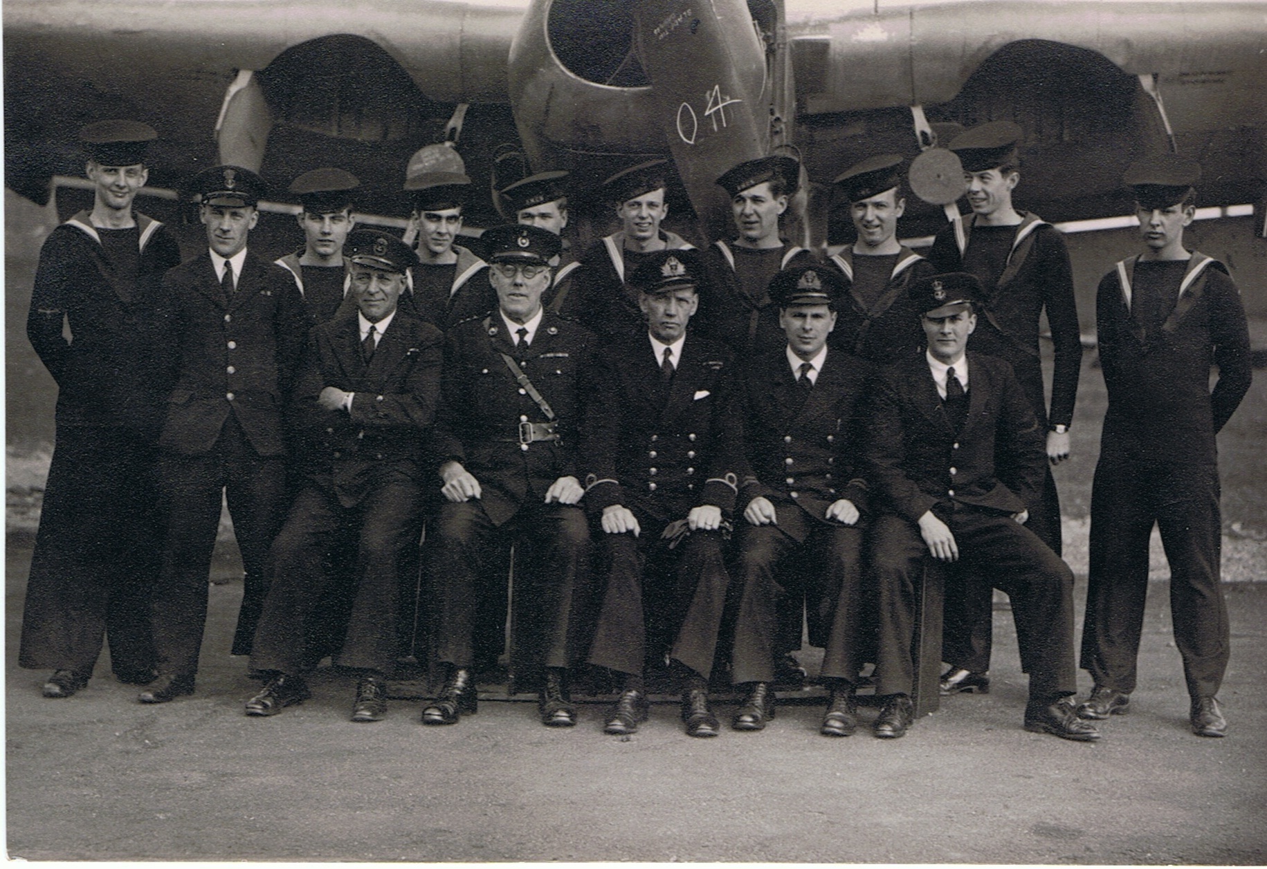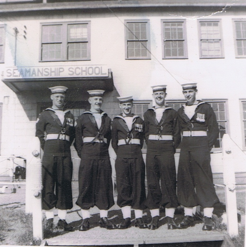 L-R: Pap Clark; Bill Grant; Dick MacGarrigle; D. Sherlock; WO Rombough at the seamanship school, HMCS CORNWALLIS