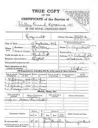 On 23 Apr 1943 he joined the 5th Reserve Armoured Division, Royal Canadian Army Service Corps. On 13 Mar 1944 he transferred to the RCNVR (service number V-81754) and was demobilized Aug 1945. He re-enlisted in the Navy at HMCS CHIPPAWA on 08 Aug 1954.