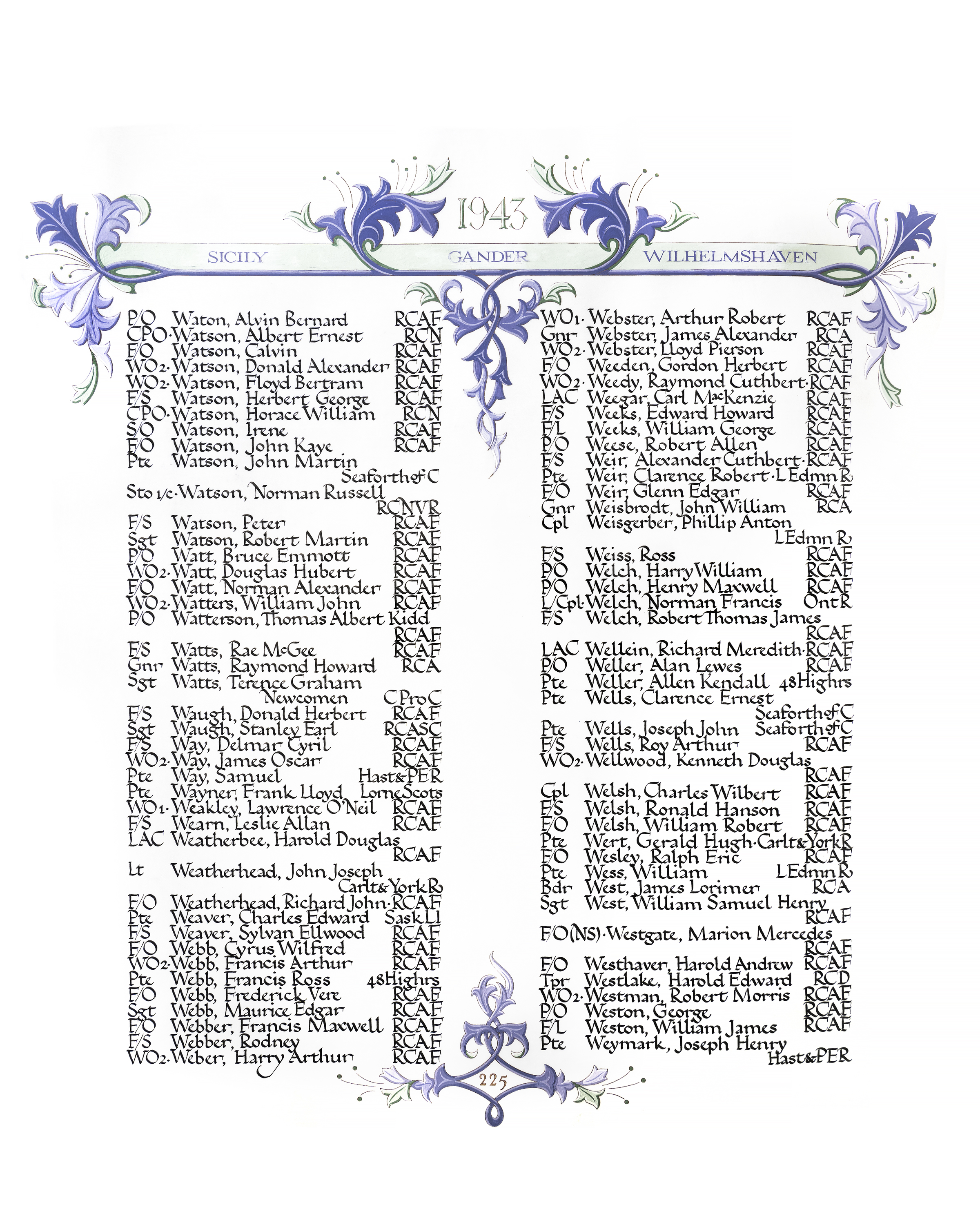 Ships served in: WINNIPEG DIVISION RCNVR - Enlisted 23 Sep 1939. Commenced Active Service 14 Jun 1940 as a Sto 2c, RCNVR HMCS NADEN - Drafted to NADEN 21 Jun 1940 as a Sto 2c, RCNVR HMCS WETASKIWIN - Drafted to WETASKIWIN 02 Jan 1941 as a Sto 2c, RCNVR HMCS NADEN - Drafted to NADEN 20 Jan 1941 as a Sto 2c, RCNVR HMCS AGASSIZ - Drafted to AGASSIZ 21 Jan 1941 as a Sto 2c, RCNVR HMCS CHICOUTIMI - Drafted to CHICOUTIMI 12 Feb 1942 as a Sto 2c, RCNVR HMCS CORNWALLIS - Drafted to CORNWALLIS 09 May 1942 as a Sto 2c, RCNVR HMCS STADACONA - Drafted to STADACONA 17 Jul 1942 as a Sto 2c, RCNVR HMCS LOUISBURG - Drafted to LOUISBURG 14 Aug 1942 as a Sto 2c, RCNVR