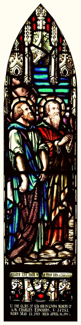 (CE01) Documents from the Service File of Charles Edward (CE02) Stained Glass Window – Stained glass window from St. John's Anglican Church, Thunder Bay, Ontario dedicated to Charles Edwards (CE03) Charles Edwards, location unknown // From the collection of Edmund John Ferris, RCNVR.
