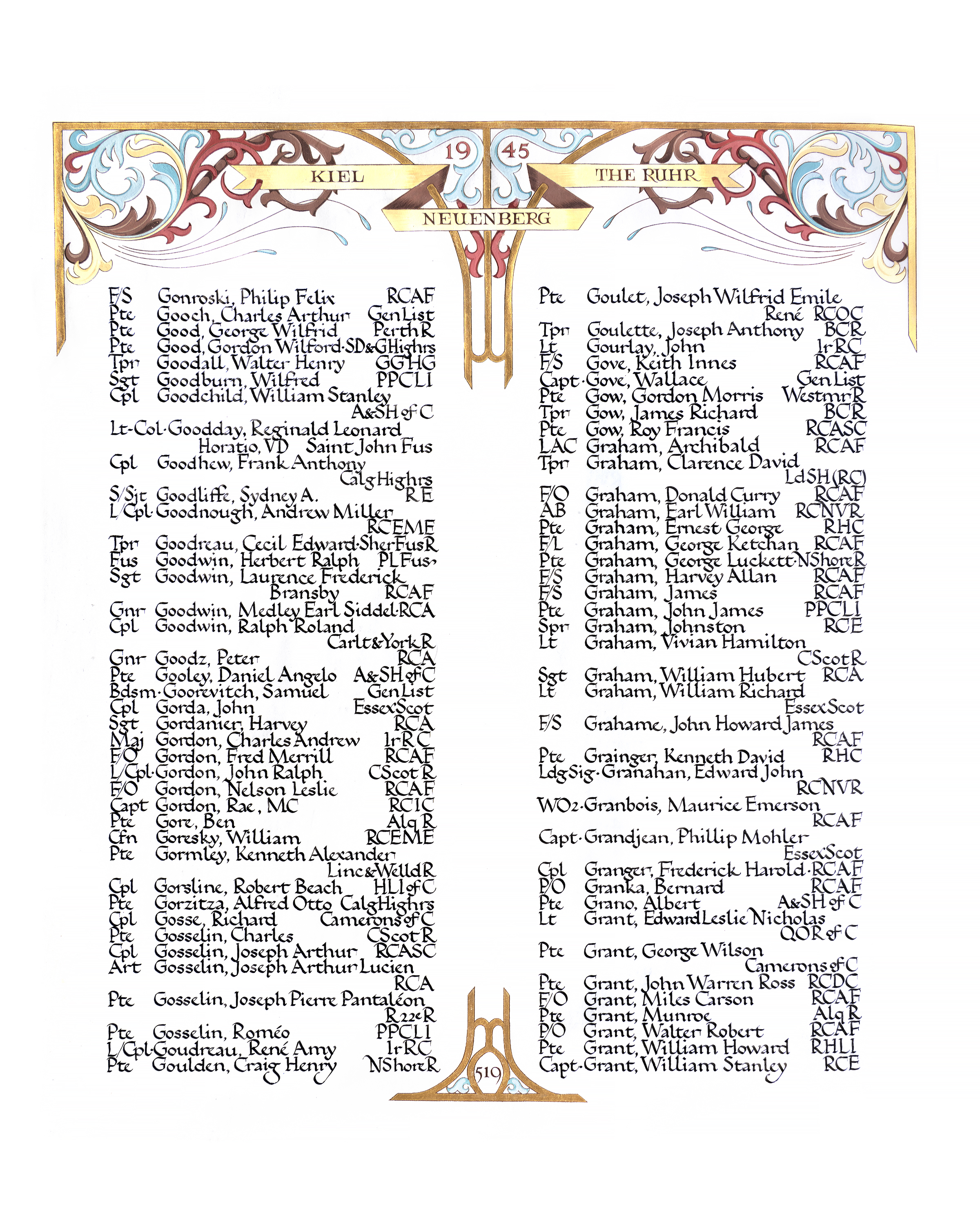 Ships served in: TORONTO DIVISION RCNVR - Enlisted 12 Apr 1939. Commenced Active Service 25 Dec 1939 as an OS, RCNVR * Rated O/Sig 13 Apr 1940 HMCS STADACONA - Drafted to STADACONA 22 May 1940 as an O/Sig, RCNVR * Rated Sig 16 Aug 1940 HMCS ANDREE DUPRE - Drafted to ANDREE DUPRE 04 Sep 1940 as a Sig, RCNVR HMCS CAPTOR II (NOIC SAINT JOHN) - Drafted to CAPTOR II 16 Sep 1940 HMCS INVADER - Served in INVADER while drafted to CAPTOR II HMCS STADACONA - Drafted to STADACONA 06 May 1941 as a Sig, RCNVR HMCS PRESCOTT - Drafted to PRESCOTT 17 Jun 1941 as a Sig, RCNVR HMCS AVALON - Drafted to AVALON 01 Sep 1941 as a Sig, RCNVR HMCS DAUPHIN - Drafted to DAUPHIN 06 Mar 1942 as a Sig, RCNVR HMCS AVALON - Drafted to AVALON 29 Jul 1942 as a Sig, RCNVR HMCS ST HYACINTHE -Drafted to ST HYACINTHE 21 Aug 1942 as a Sig, RCNVR HMCS STADACONA - Drafted to STADACONA 03 Oct 1942 as a Sig, RCNVR HMCS HOCHELAGA II - Drafted to HOCHELAGA II (manning pool) 09 Oct 1942 as a Sig, RCNVR HMCS BLAIRMORE - Drafted to BLAIRMORE 12 Oct 1942 as a Sig, RCNVR HMCS MULGRAVE - Drafted to MULGRAVE 06 Nov 1942 as a Sig, RCNVR HMCS STADACONA - Drafted to STADACONA 19 Dec 1942 as a Sig, RCNVR HMCS SHELBURNE - Drafted to SHELBURNE 07 Jan 1943 as a Sig, RCNVR HMCS STADACONA - Drafted to STADACONA 27 Jul 1943 as a Sig, RCNVR HMCS ST HYACINTHE - Drafted to ST HYACINTHE 06 Aug 1943 as a Sig, RCNVR HMCS STADACONA - Drafted to STADACONA 09 Oct 1943 as a Sig, RCNVR * Rated A/L/Sig 15 Oct 1943 HMCS
