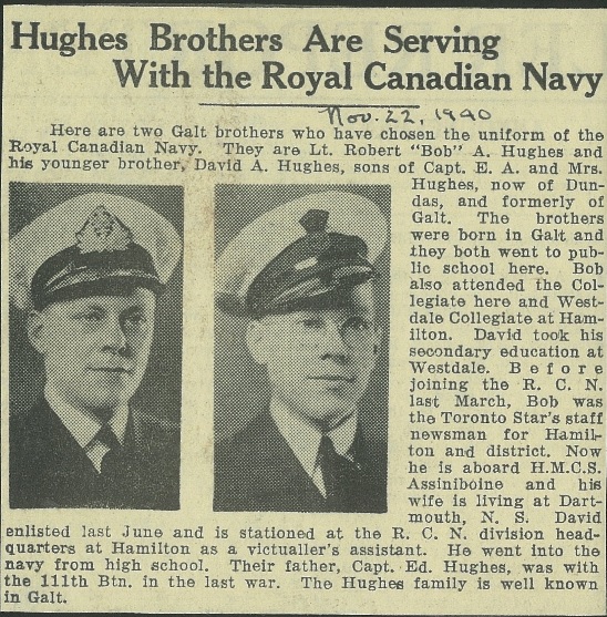 David Hughes' brother, Robert Alexander Hughes, died in the sinking of HMCS SPIKENARD