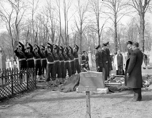 (AK05) The Honour Guard fires a salute at the funeral service for CPO Albert Kynman at the Camp Hill Cemetery, Halifax, NS