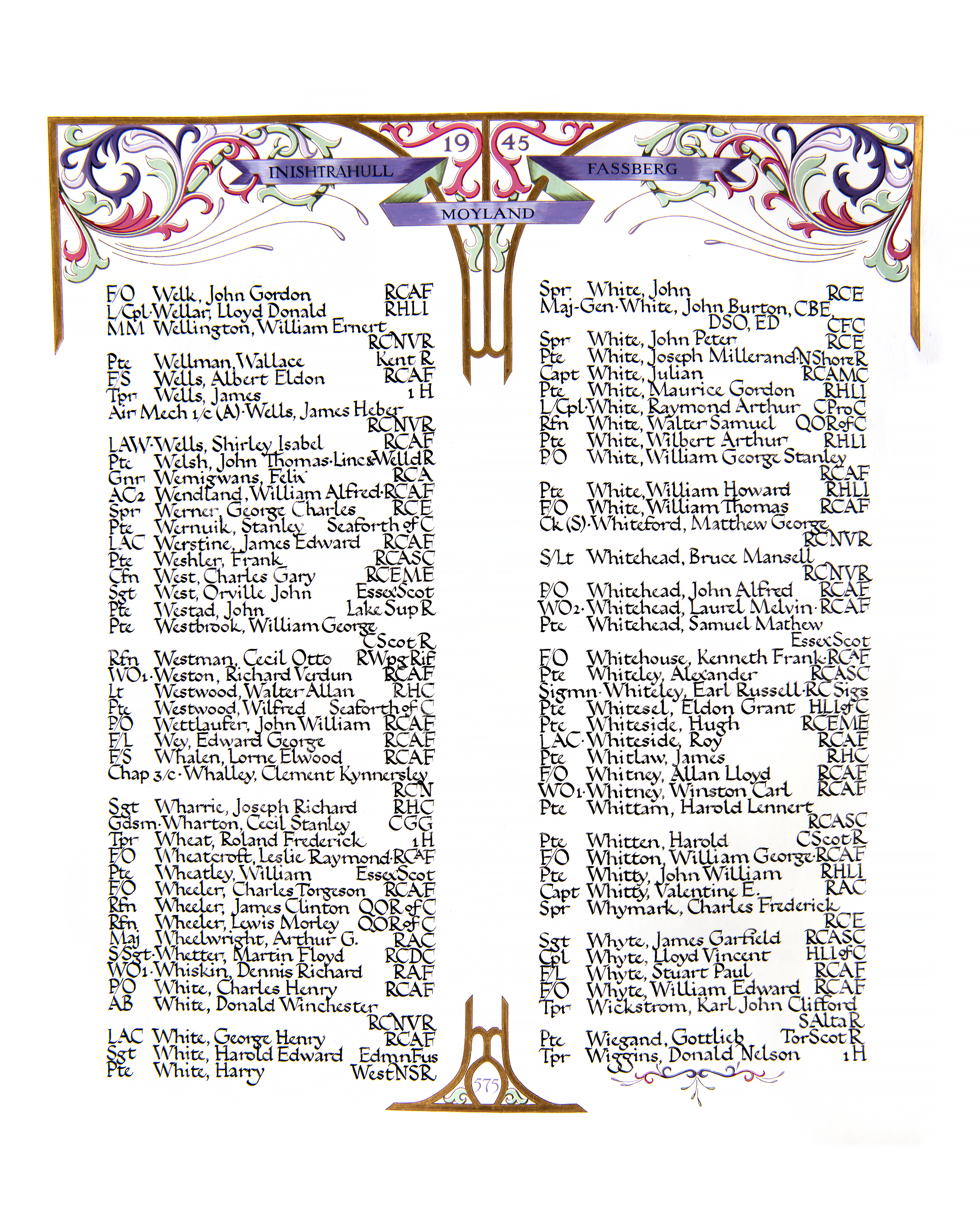 Ships served in: VANCOUVER DIVISION RCNVR - Enlisted 18 Jun 1941. Commenced Active Service 18 Jun 1941 as an OS, RCNVR HMCS NADEN - Drafted to NADEN 13 Aug 1941 as an OS, RCNVR * Rated O/Sig 25 Sep 1941 FR Vessel MOONLOCK - Drafted to MOONLOCK 06 Dec 1941 as an O/Sig, RCNVR FR Vessel BILLOW - Drafted to BILLOW 01 Apr 1942 as an O/Sig, RCNVR HMCS NADEN - Drafted to NADEN 03 Sep 1942 as an O/Sig, RCNVR * Rated Sig 18 Jun 1942 HMCS GIVENCHY - Drafted to GIVENCHY 01 Nov 1942 as a Sig, RCNVR HMCS BURRARD - Drafted to BURRARD 27 Nov 1942 as a Sig, RCNVR HMCS MEANDER - Drafted to MEANDER 15 Dec 1942 as a Sig, RCNVR HMCS ST HYACINTHE - Drafted to ST HYACINTHE 14 Apr 1943 as a Sig, RCNVR HMCS STADACONA - Drafted to STADACONA 23 Jun 1943 as a Sig, RCNVR * Rated A/L/Sig 01 Jun 1943 HMCS CORNWALLIS - Drafted to CORNWALLIS 23 Mar 1944 as an A/L/Sig, RCNVR * Discharged 01 May 1944 - Promoted to Commissioned Rank HMCS CORNWALLIS - Appointed to CORNWALLIS 02 May 1944 as a Prob. SLt, RCNVR, add'l HMCS YORK - Appointed to YORK 23 May 1944 as a Prob. SLt, RCNVR for initial training and duty HMCS KINGS - Appointed to KINGS 05 Aug 1944 as a Prob. SLt, RCNVR, add'l for Disposal or Under Training (Navy List Sep 1944) HMCS CORNWALLIS - Appointed to CORNWALLIS 05 Aug 1944 as a Prob. SLt, RCNVR for Executive Officers' Courses (Navy List Nov 1944) HMCS ESQUIMALT - Appointed to ESQUIMALT 27 Dec 1944 as a SLt, RCNVR