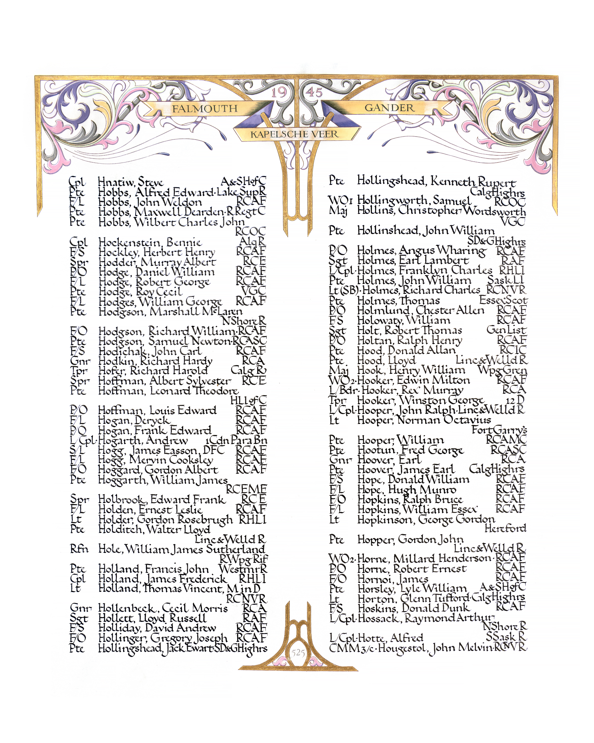 HOLLAND, Thomas Vincent Lt, RCNVR, MPK - 18 Mar 1945, HMCS GUYSBOROUGH - Son of Peter E. and Agatha (nee MacCormack) Holland, of Souris, Prince Edward Island. Bother of Joseph, Henry, Fr. Charlie, Mae, Anne and Beatrice. Nephew of Joseph and Thomas Vincent Holland. His uncle Joseph Holland had served with the Canadian Infantry (Nova Scotia Regiment) and died on September 23, 1918. His uncle Thomas Holland had served with the Canadian Infantry (New Brunswick Regiment) and died on August 27, 1918.