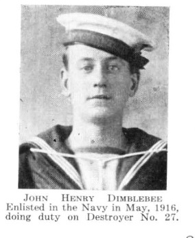 The RCN Ledger Sheets give John's year of birth as 1900. Other documents post wartime show 1902. It is possible that John lied about his age to join the navy as he would only have been 14 years of age in 1916 if his year of birth was 1902. He is listed under Dimblebee and Dimbledee.