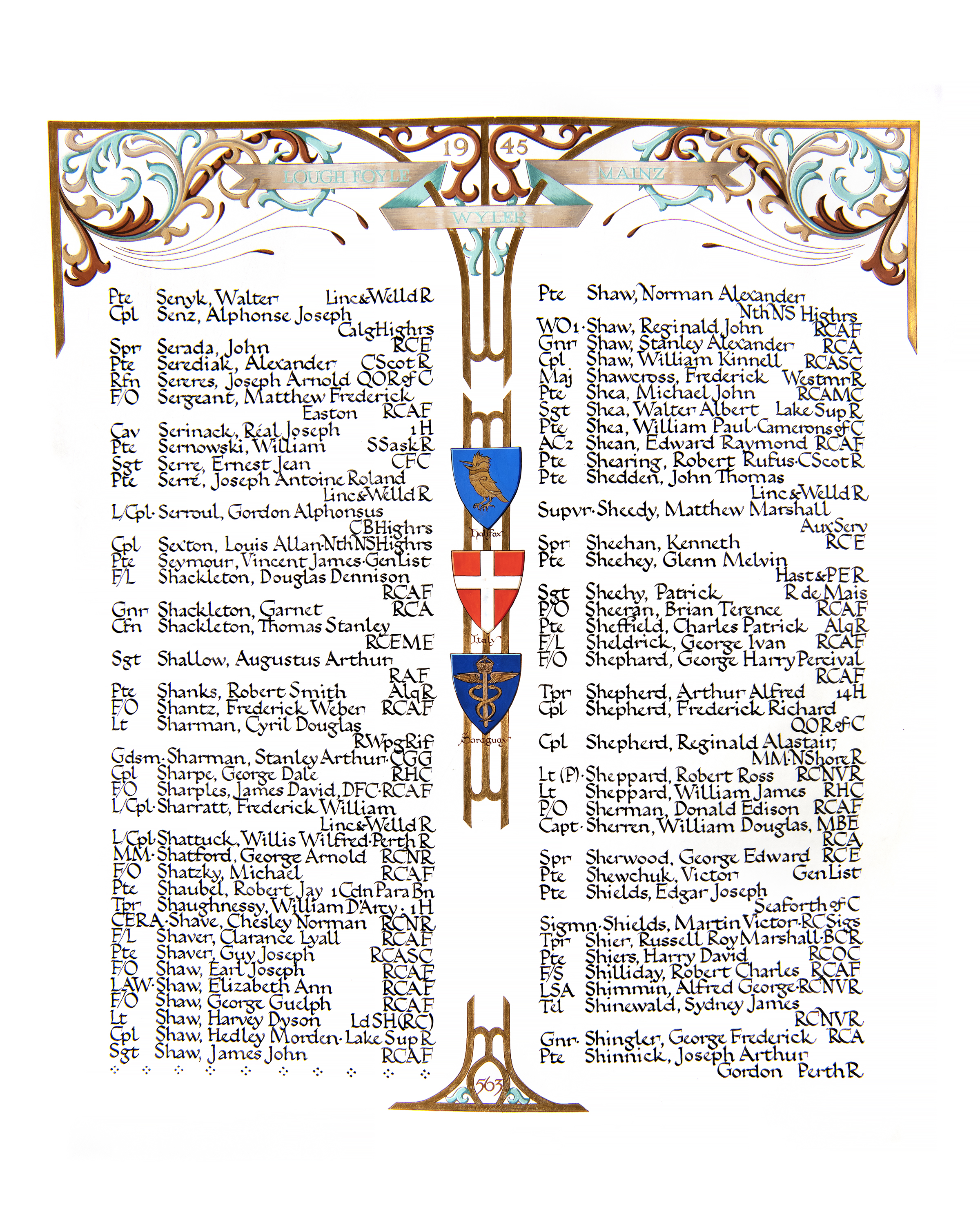 SHINEWALD, Sydney James, Tel, V42020, RCNVR, MPK - 18 Mar 1945, HMCS GUYSBOROUGH - Son of Jean Shinewald, of Winnipeg, Manitoba.