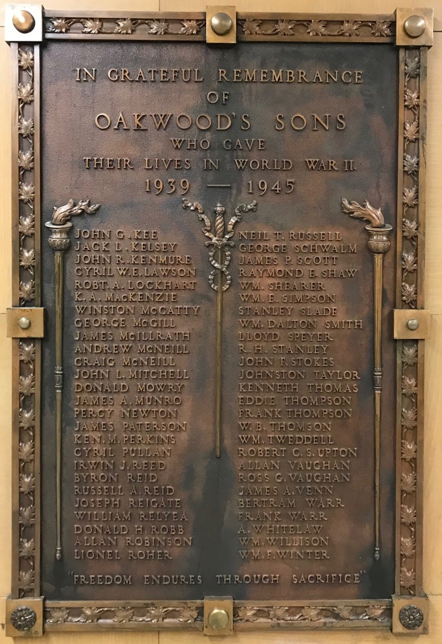 In memory of the students of Oakwood Collegiate Institute who went of the war and did not come home. Courtesy of Operation Picture Me