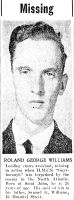 (RGW001) Leading Supply Assistant Roland Williams Missing // The Saint John Times Globe // Courtesy of Operation Picture Me (RGW002) Service File of Roland Williams // Source: The Library and Archives of Canada