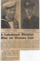 (GZ17) HMCS LEASIDE K492 on her commissioning day (GZ18) Newspaper article on the commissioning of HMCS LEASIDE K492. Officers mentioned in the article: Lt G.G.K. Holder, CO; Lt T.H. Burdon, 1st Lt (XO); Lt G.A. Southee, Navo (GZ19) HMCS LEASIDE - Dedication pamphlet (cover) (GZ20) Two officers by ship's badge in the wardroom of HMCS LEASIDE K492 GZ21) Sing-a-long in the Wardroom on HMCS LEASIDE K492
