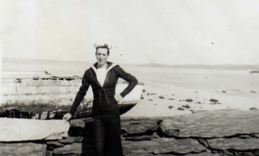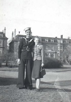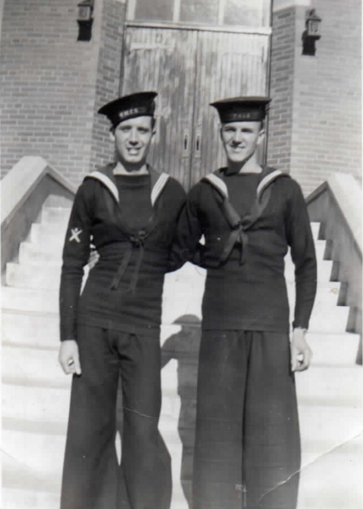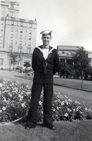 (GZ13) Gerry Zaphe (left) and shipmate on HMCS SPIKENARD (GZ14) Unknown sailor - friend of Gerry Zaphe (from photo GZ13) - on HMCS SPIKENARD (GZ15) Gerry Zaphe on HMCS SPIKENARD (GZ16) Unknown sailor on the fo'c's'le of HMCS SPIKENARD